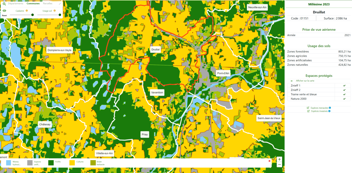 Avec OFTerritoire, ménagez, aménagez votre territoire, appuyez-vous sur des indicateurs annuels pour améliorer leur fonction écologique, reconquérir la biodiversité, prendre en compte le changement climatique. suivre vos trajectoires ZAN et ZEN.